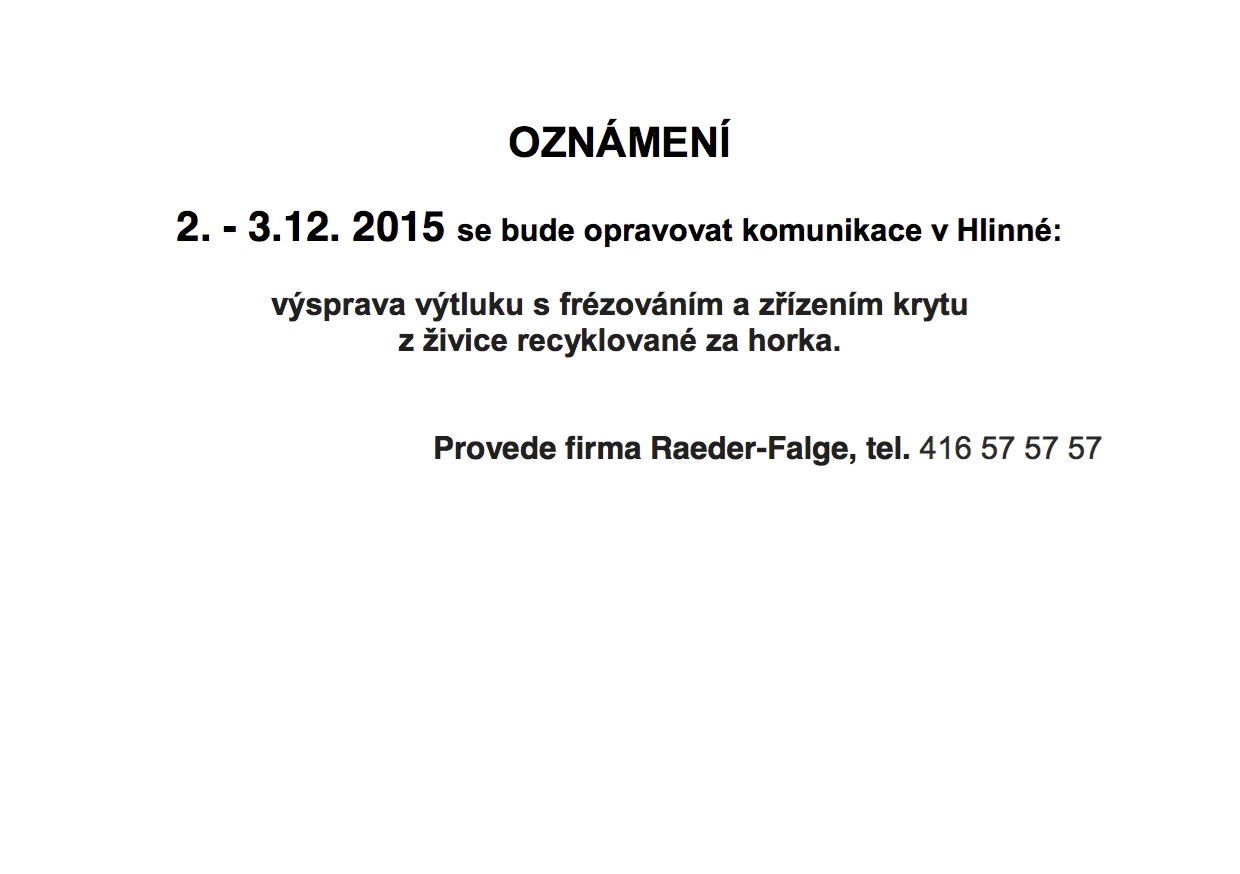 Oprava komunikace v obci Hlinná