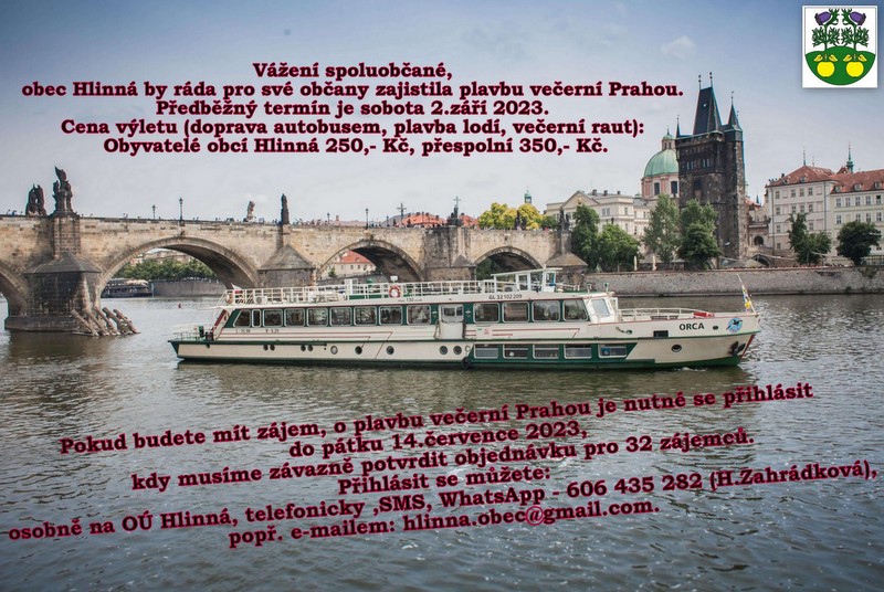 Plavba večerní Prahou (nejen) pro občany obce Hlinná