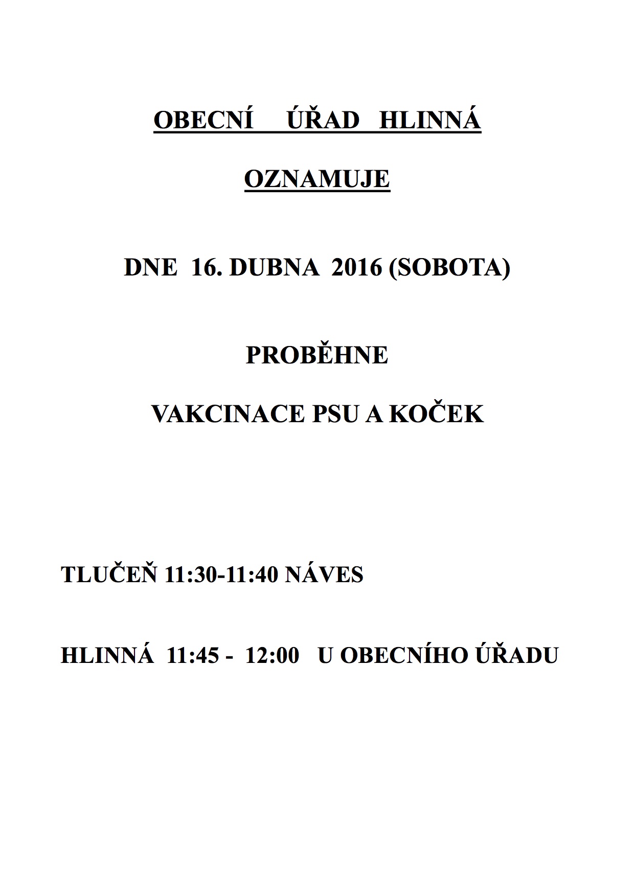 Vakcinace psů a koček 16.4.2016