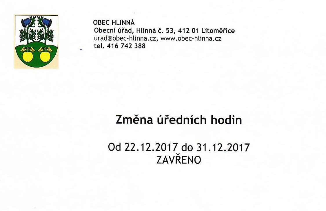Změna úředních hodin 22. – 31.12.2017 – zavřeno
